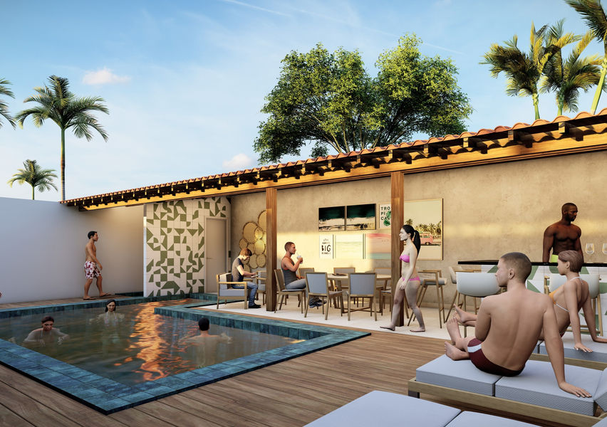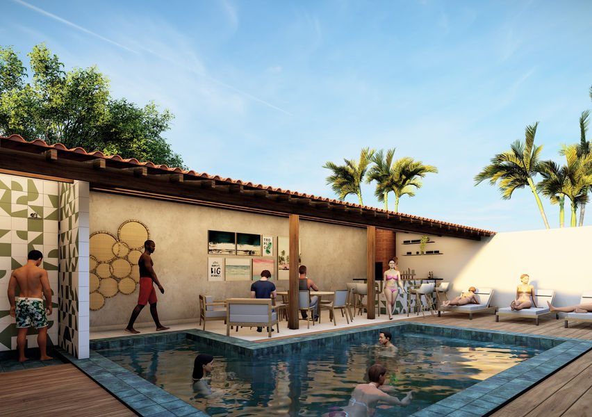 Projeto de uma pousada com área gourmet nos fundos, 10 suítes com varanda e garagem